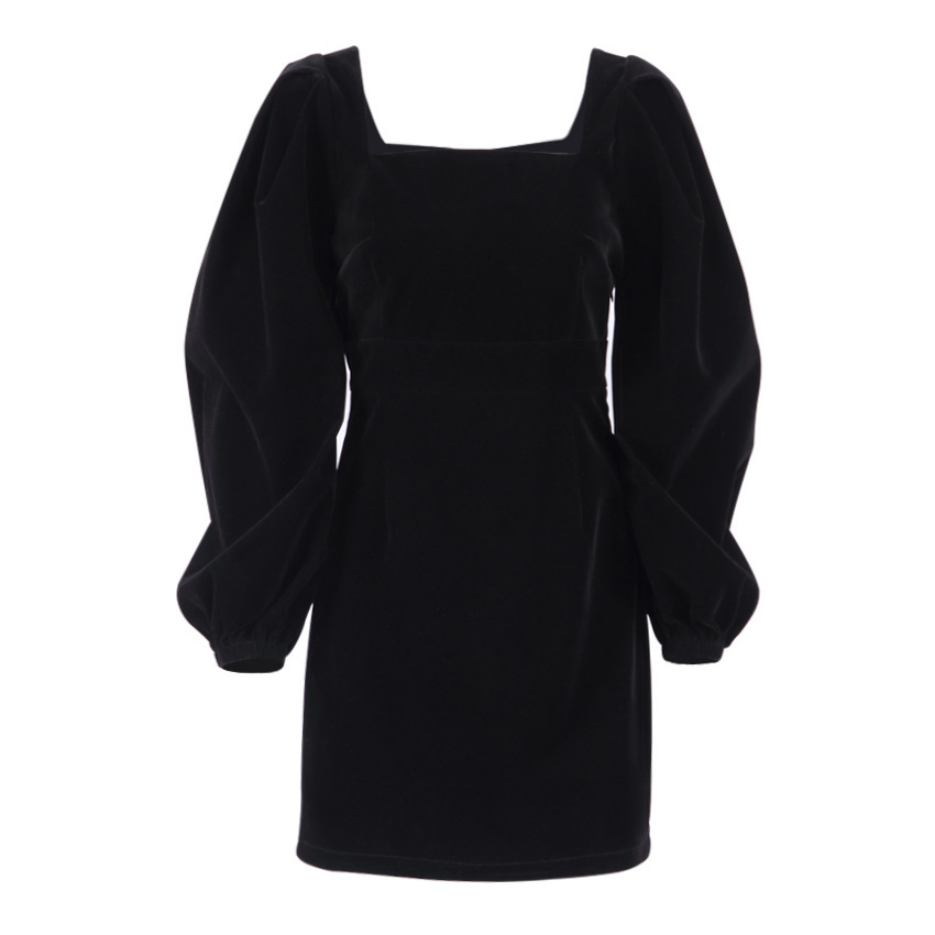 Black Puff Sleeves Velvet Bodycon Dress