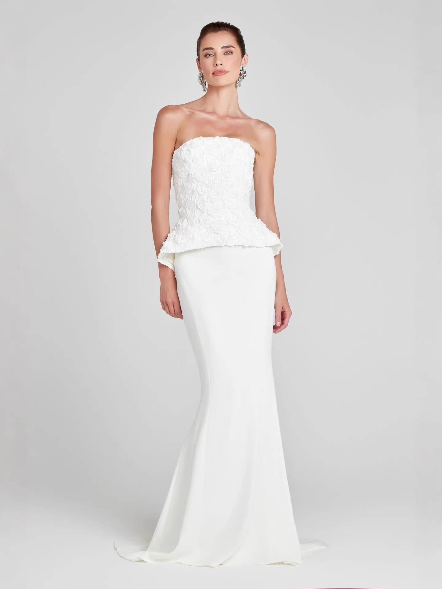 - Sculpted strapless top for a flattering fit
