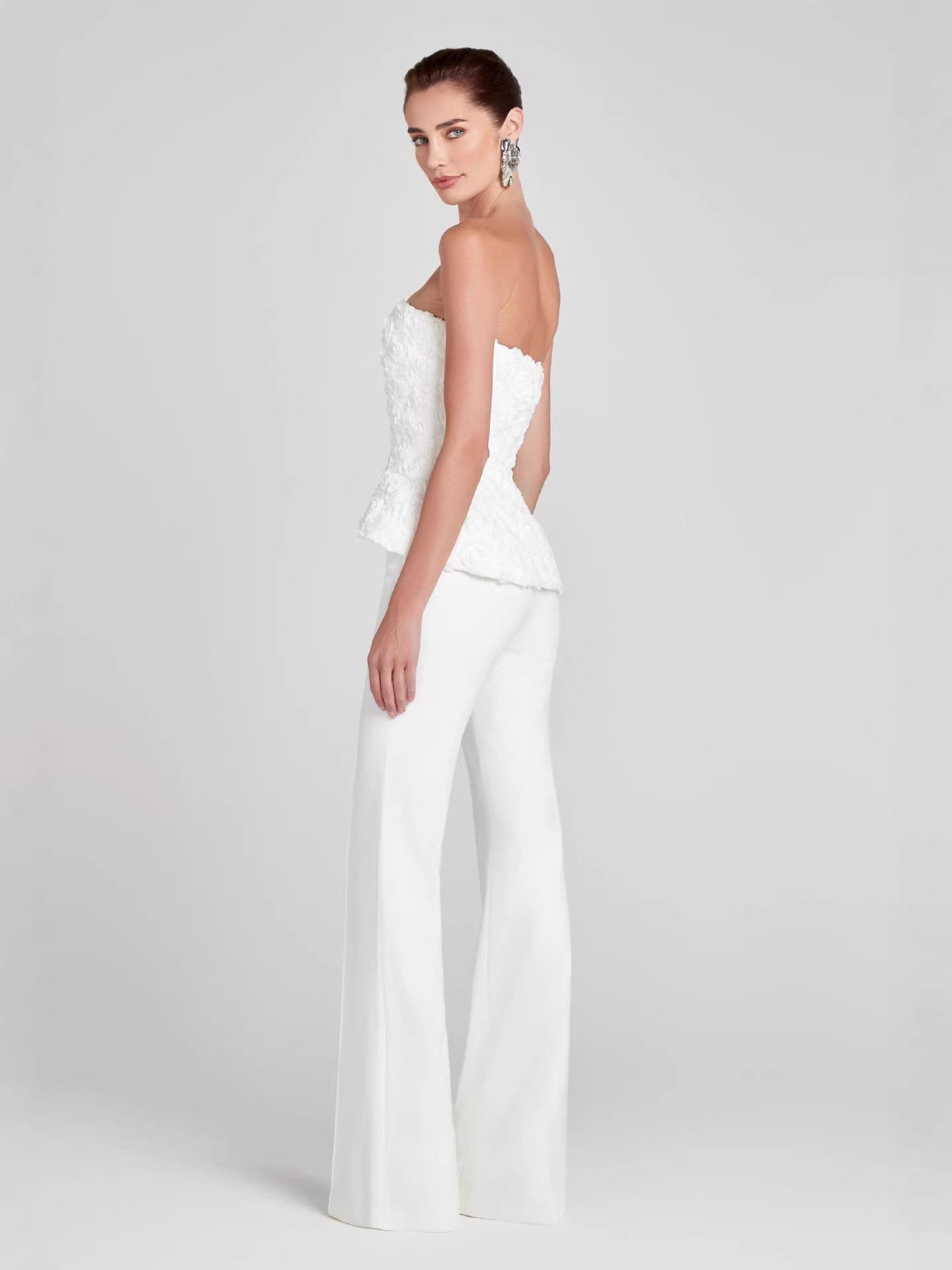 Step into effortless sophistication with the Ivory Sculpted Strapless Two-Piece Pant Set — a refined two-piece designed to elevate your presence instantly.